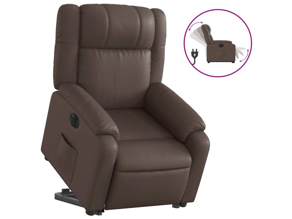Elektrické zvedací polohovací křeslo hnědé umělá kůže 3205166