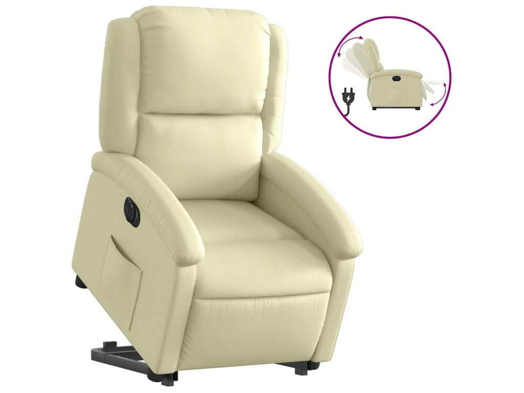 Elektrické zvedací polohovací křeslo krémové pravá kůže 3204272