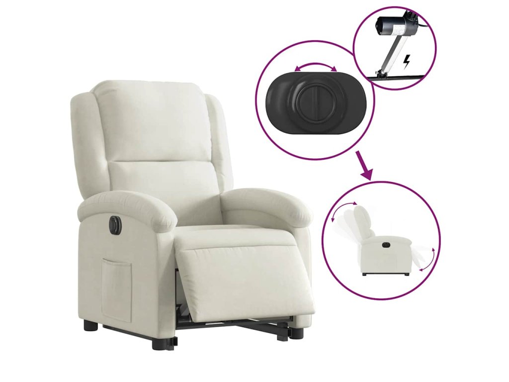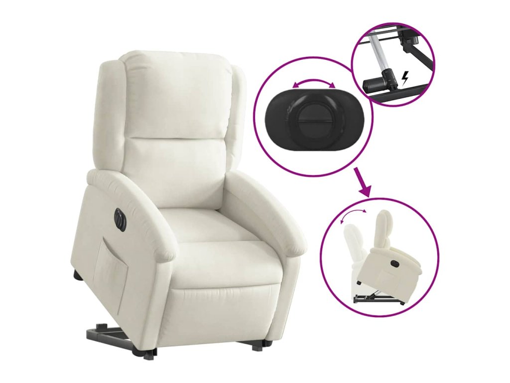 Elektrické zvedací polohovací křeslo krémové samet 3204331
