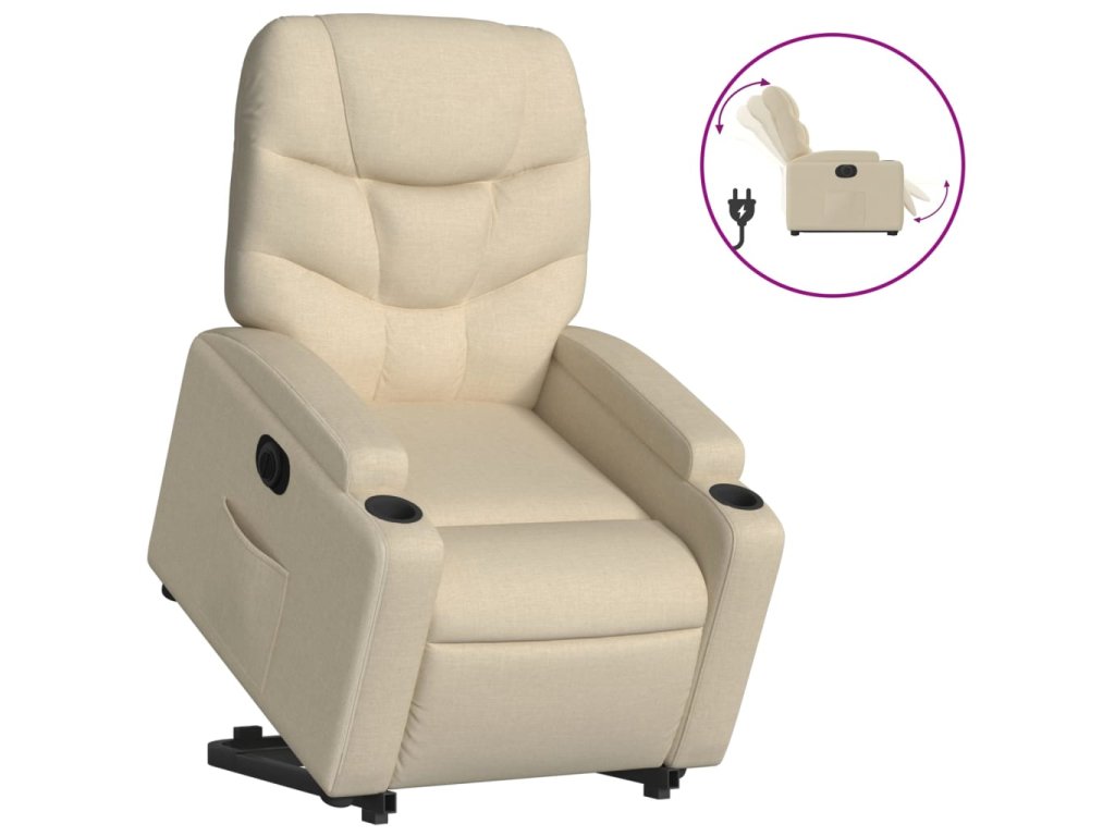 Elektrické zvedací polohovací křeslo krémové textil 3204629