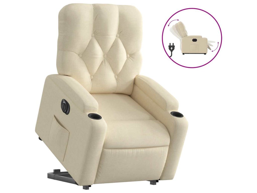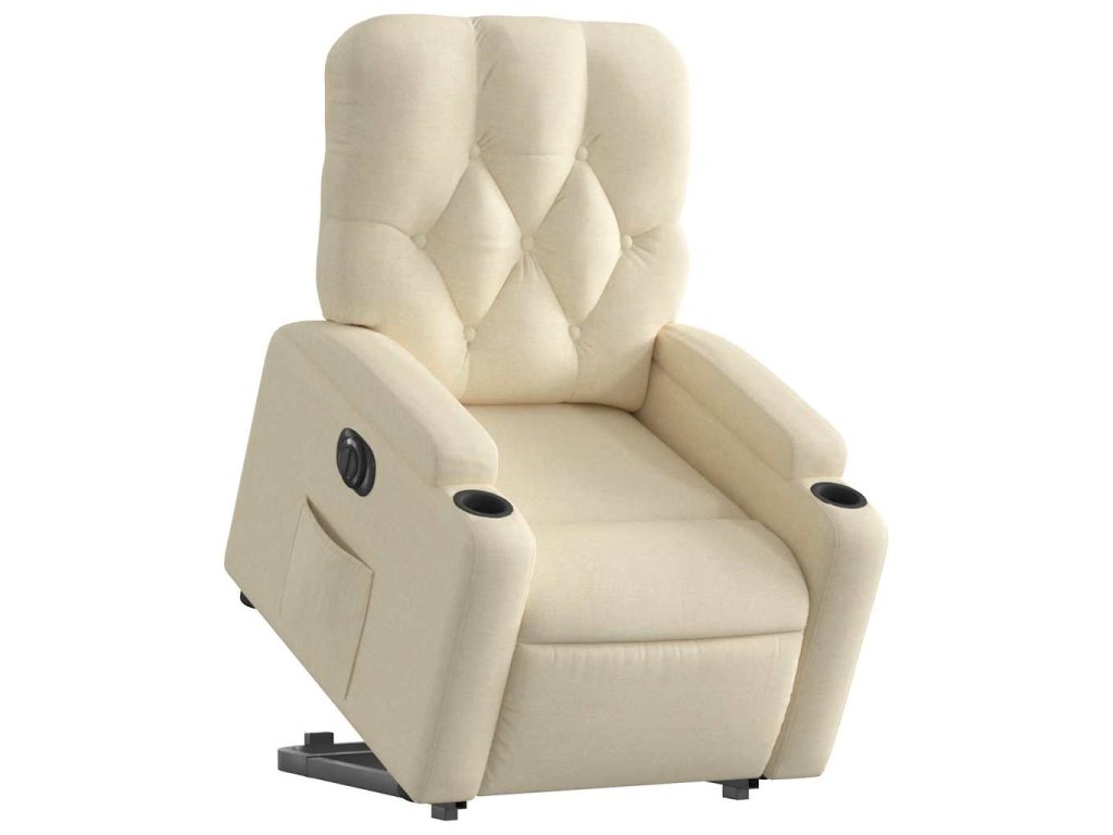 Elektrické zvedací polohovací křeslo krémové textil 3204743