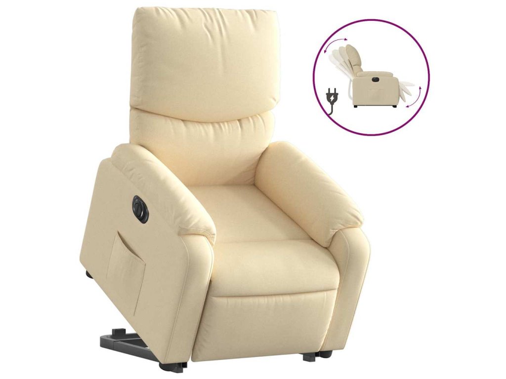 Elektrické zvedací polohovací křeslo krémové textil 3204857