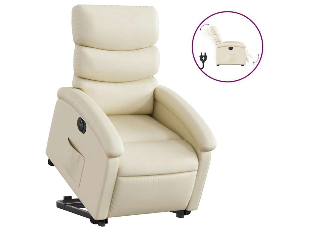 Elektrické zvedací polohovací křeslo krémové umělá kůže 3204055