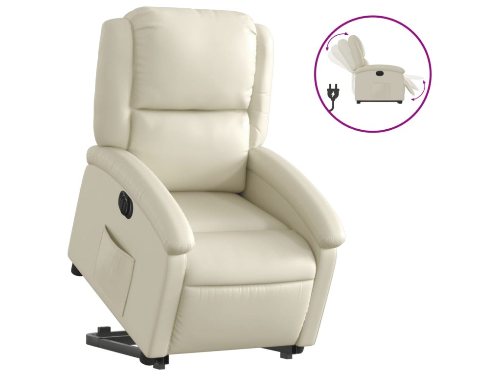 Elektrické zvedací polohovací křeslo krémové umělá kůže 3204241
