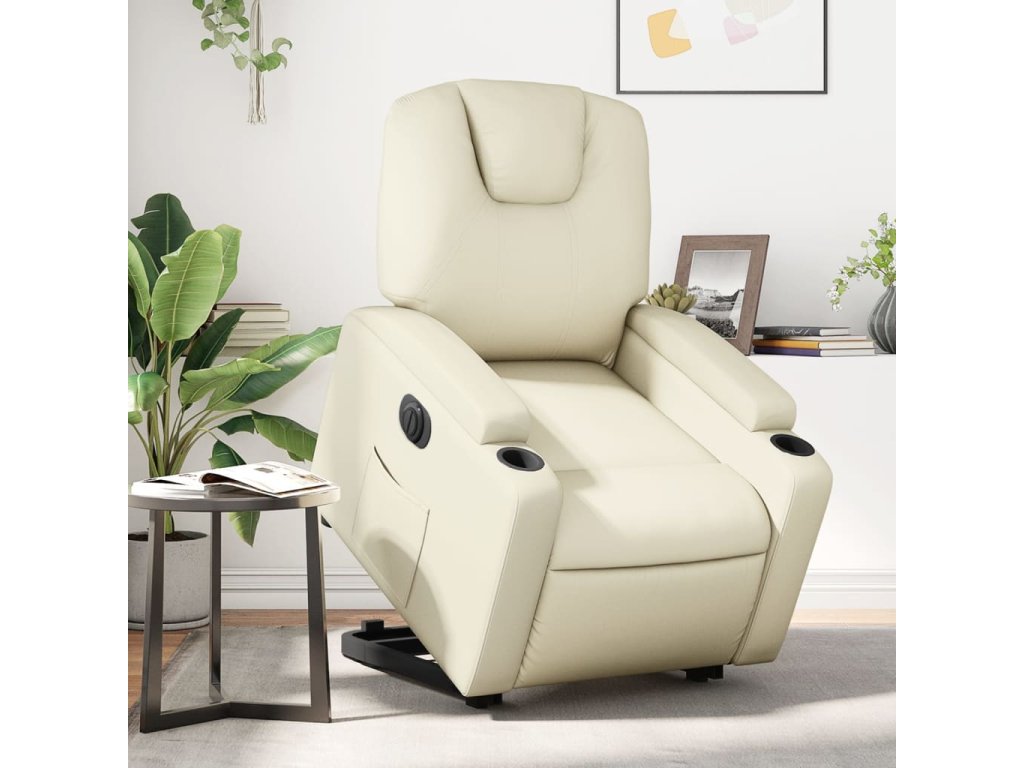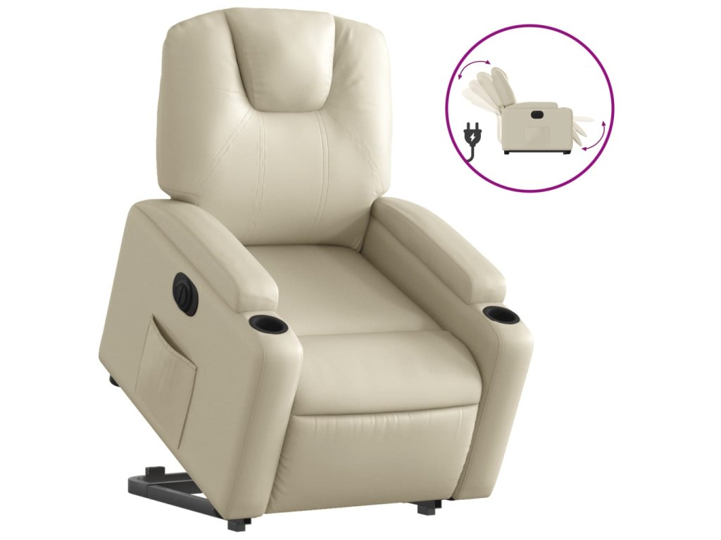 Elektrické zvedací polohovací křeslo krémové umělá kůže 3204445