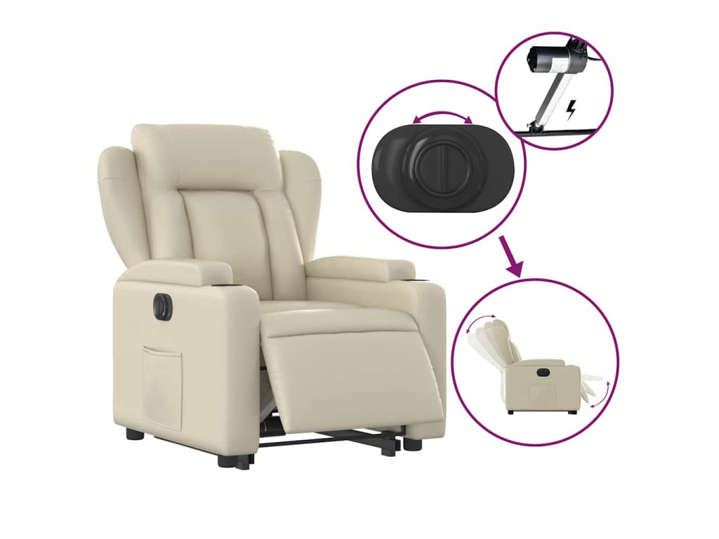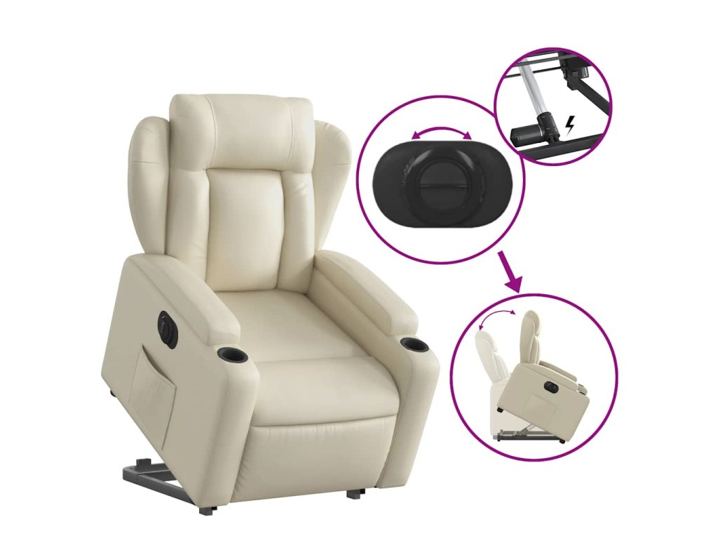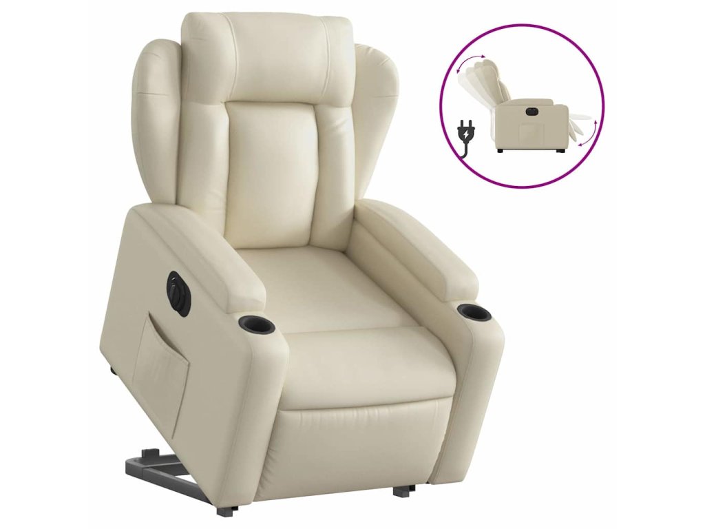 Elektrické zvedací polohovací křeslo krémové umělá kůže 3204559