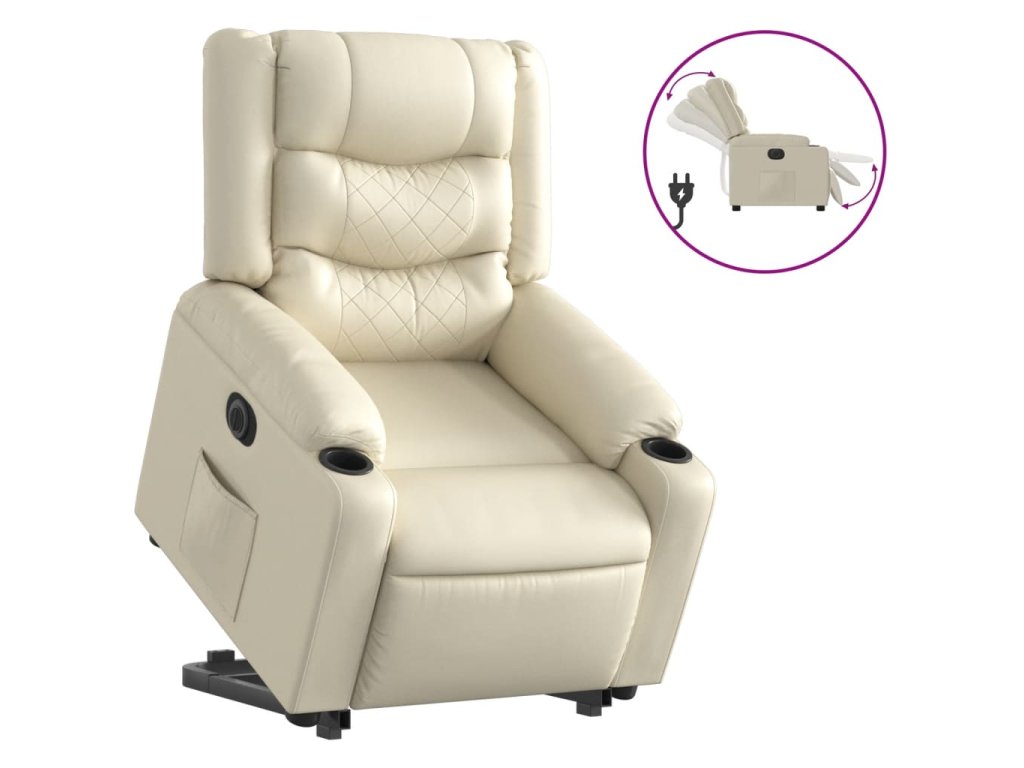 Elektrické zvedací polohovací křeslo krémové umělá kůže 3206560