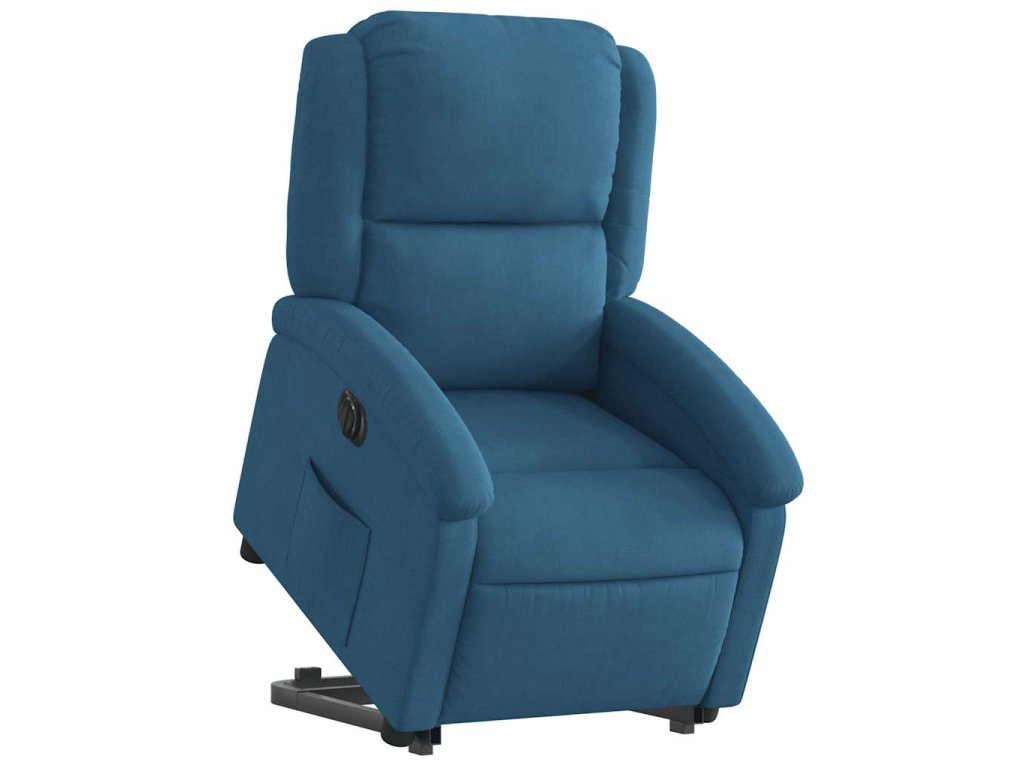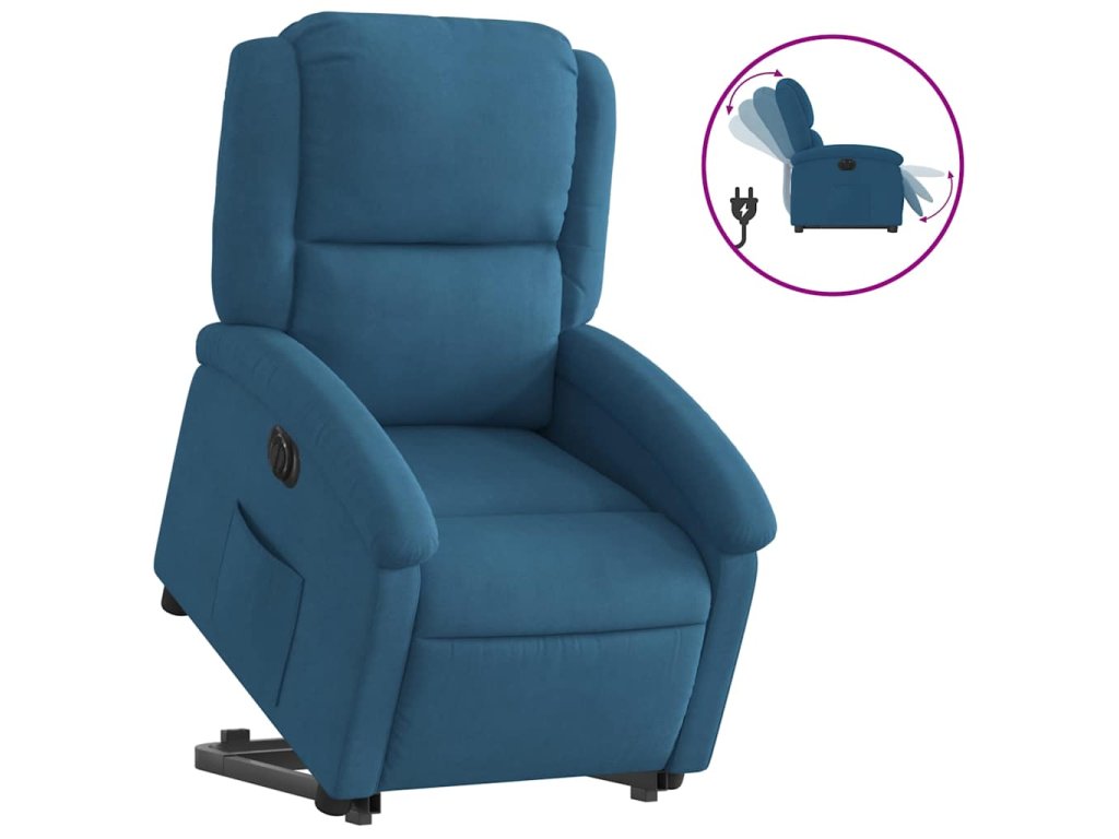 Elektrické zvedací polohovací křeslo modré samet 3204332