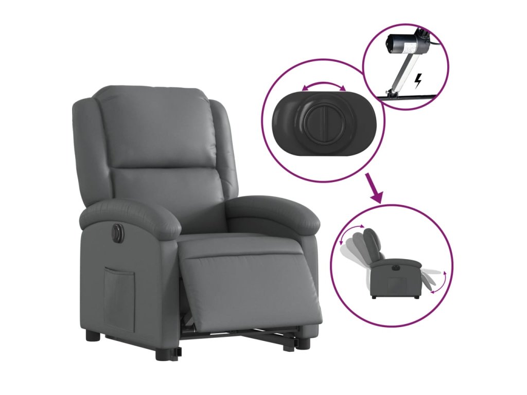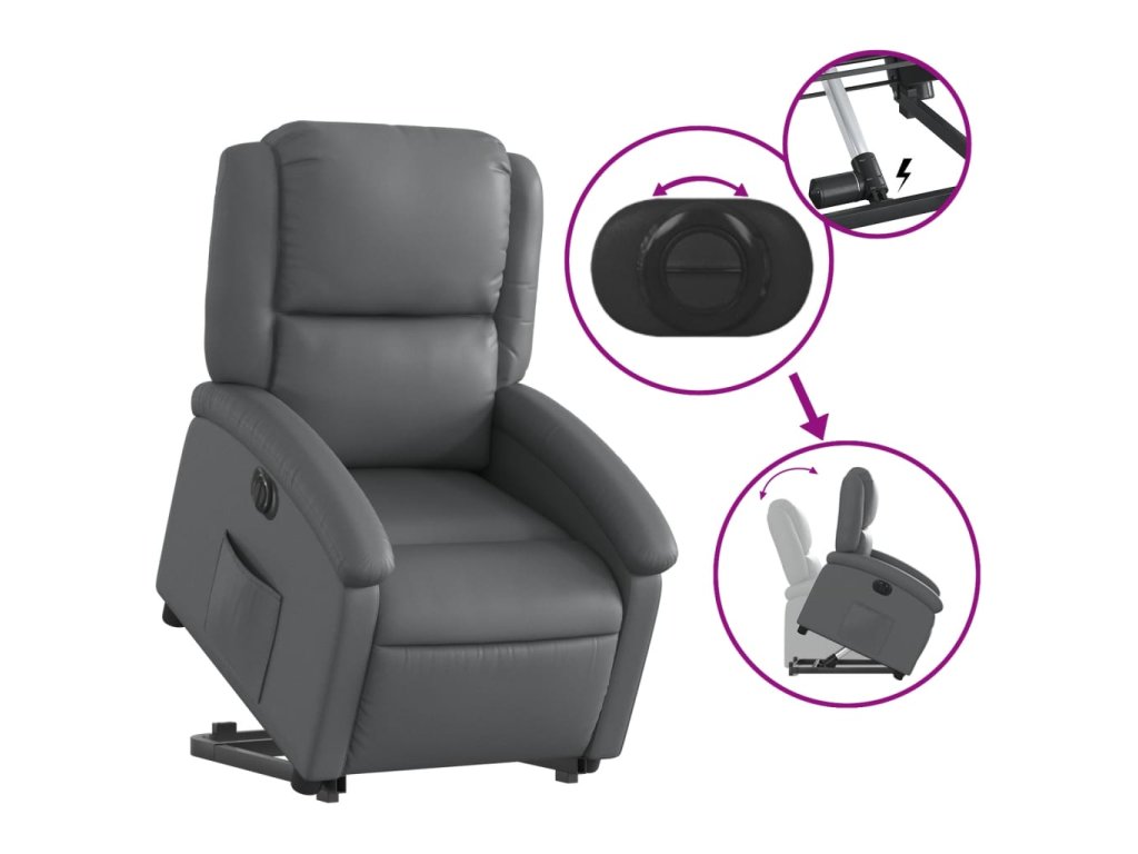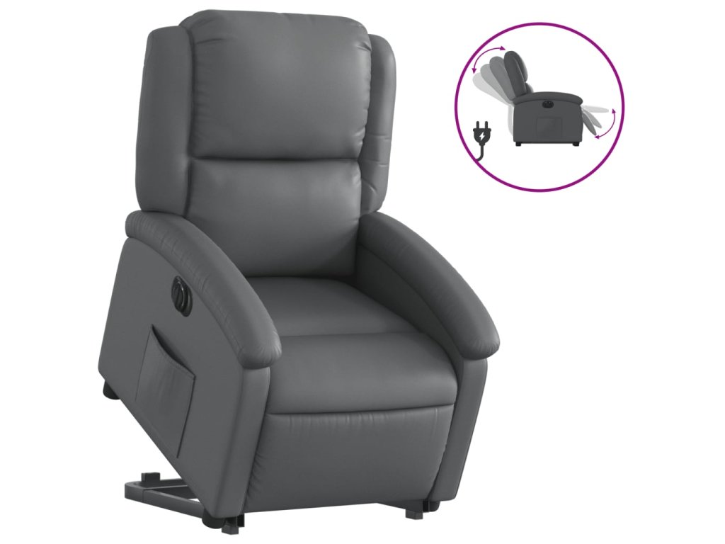 Elektrické zvedací polohovací křeslo šedé umělá kůže 3204243