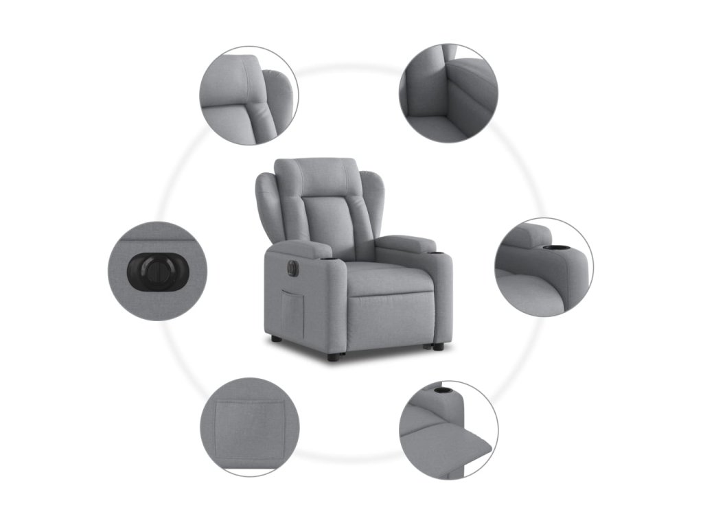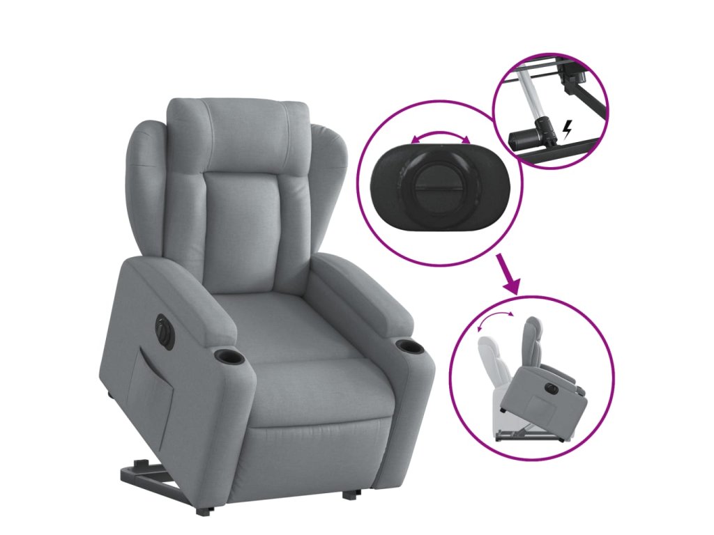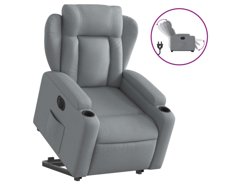 Elektrické zvedací polohovací křeslo světle šedé textil 3204506
