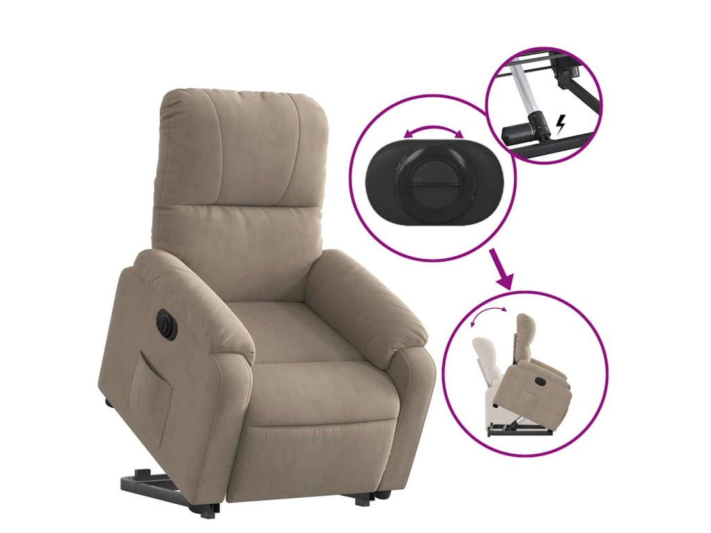Elektrické zvedací polohovací křeslo taupe látka z mikrovlákna 3204943