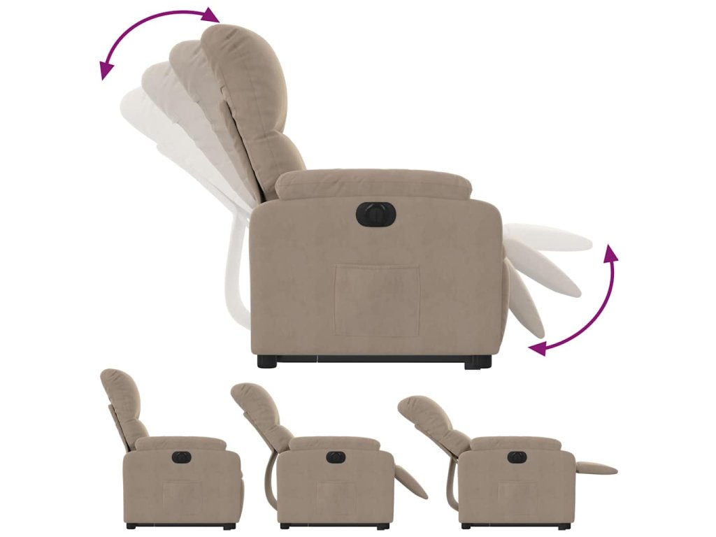 - Funkce elektrického sklápění: Toto polohovací křeslo je také vybaveno elektromotorem. Jednoduchým stisknutím tlačítka na boku křesla můžete automaticky nastavit opěrku nohou a opěradlo do libovolné polohy tak, abyste se cítili pohodlně. Tato funkce umožňuje maximální náklon 135 stupňů. Opěradlo se navíc může jednoduchým stisknutím tlačítka automaticky vrátit do původní polohy.