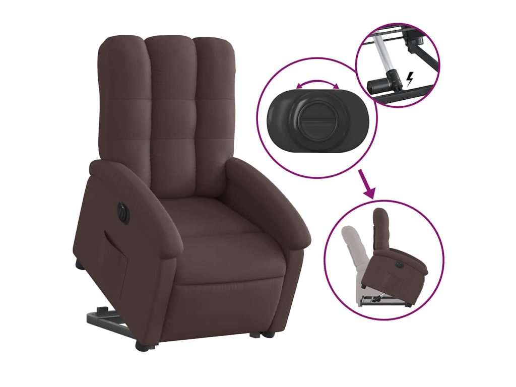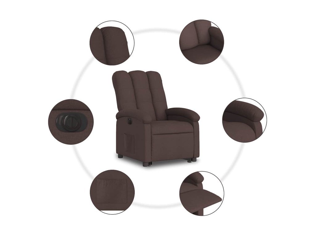 Elektrické zvedací polohovací křeslo tmavě hnědé textil 3204121