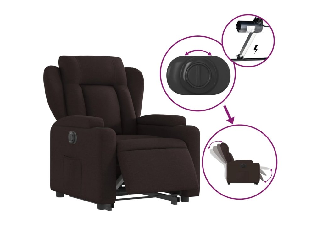 Elektrické zvedací polohovací křeslo tmavě hnědé textil 3204511