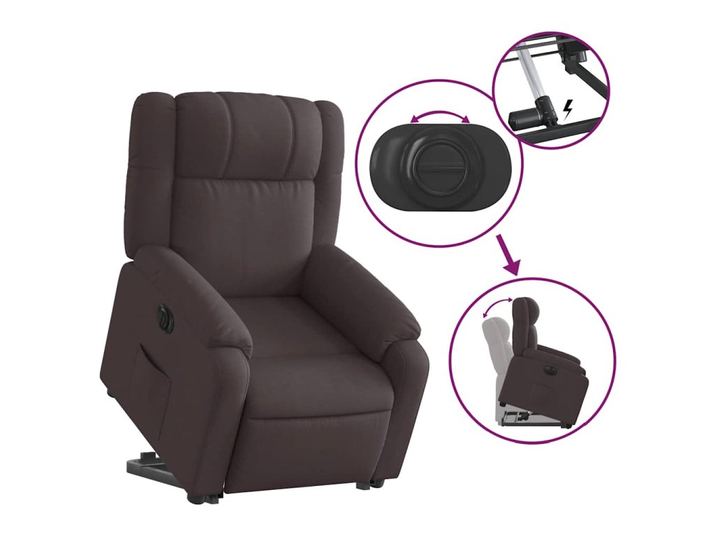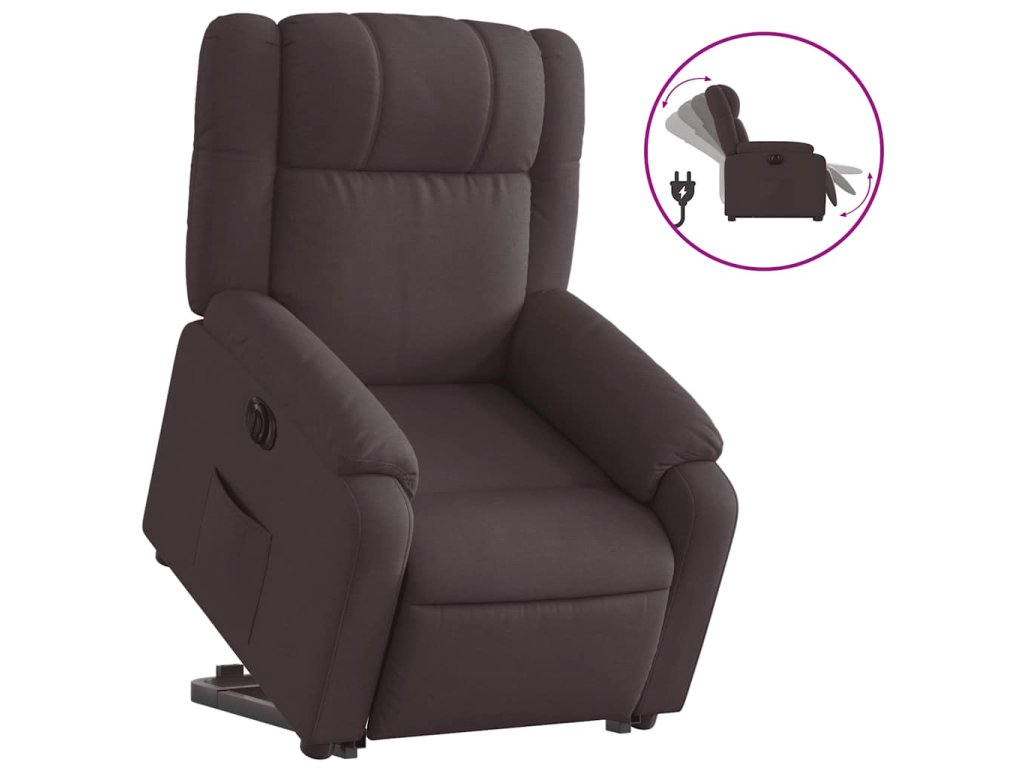 Elektrické zvedací polohovací křeslo tmavě hnědé textil 3205231