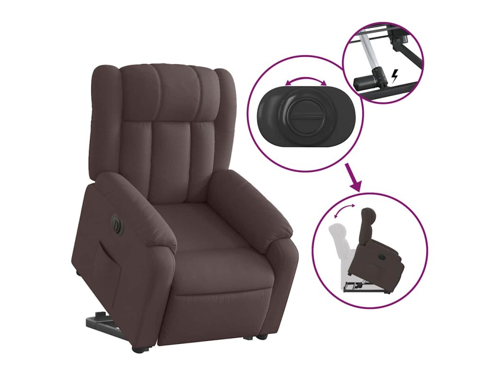 Elektrické zvedací polohovací křeslo tmavě hnědé textil 3205345
