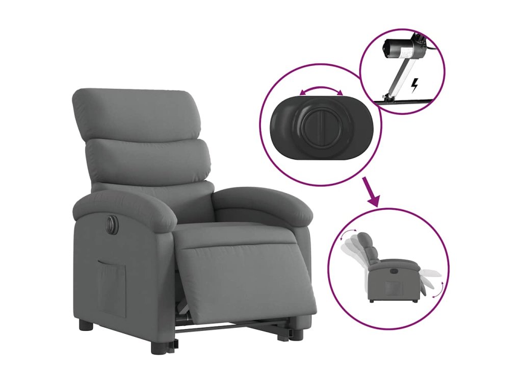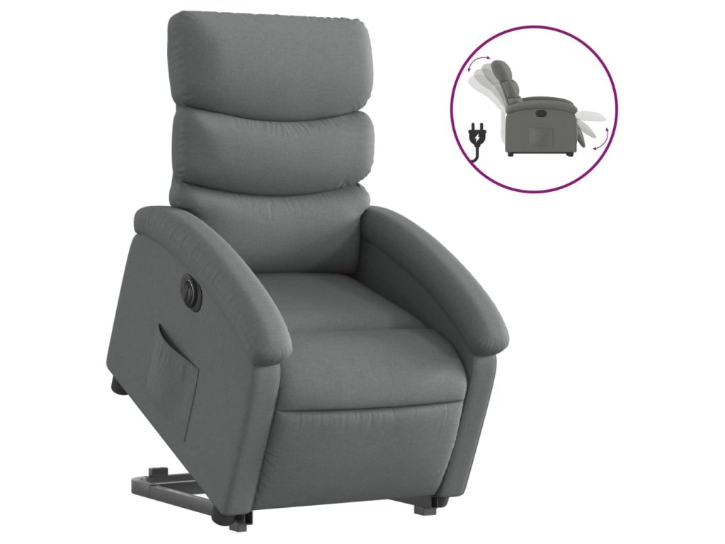 Elektrické zvedací polohovací křeslo tmavě šedé textil 3204003