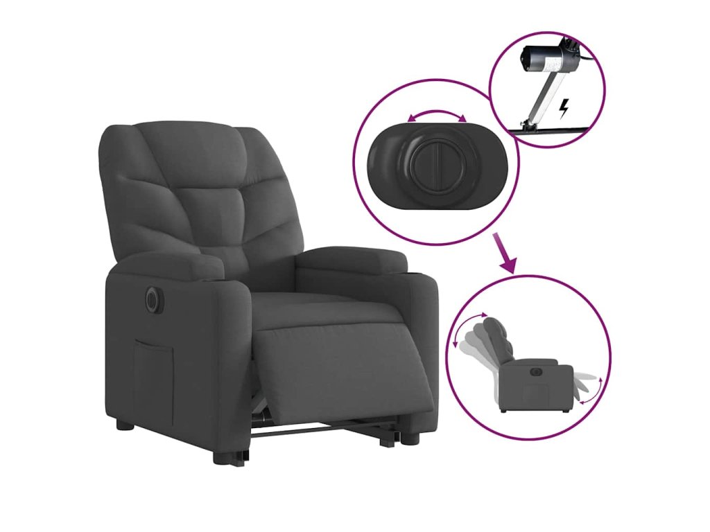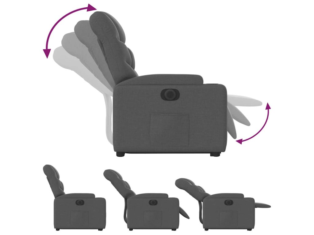 Elektrické zvedací polohovací křeslo tmavě šedé textil 3204621