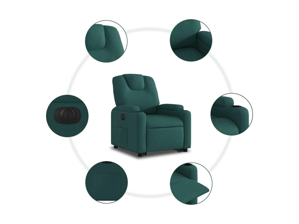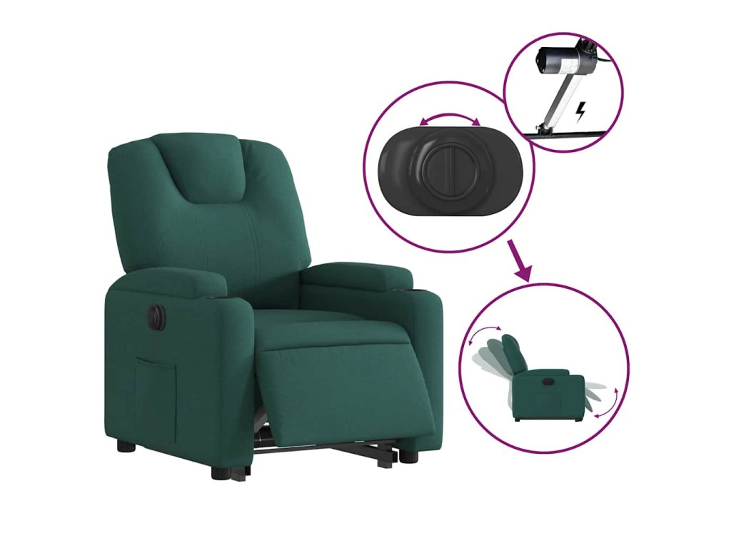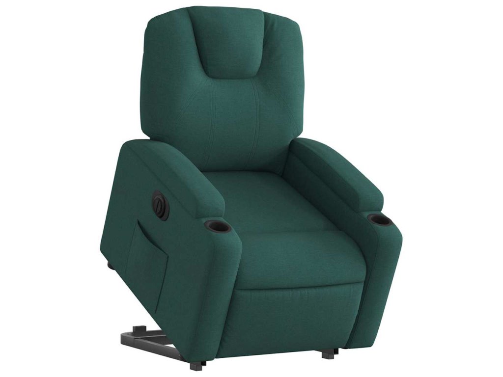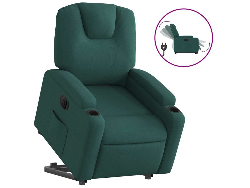 Elektrické zvedací polohovací křeslo tmavě zelené textil 3204398