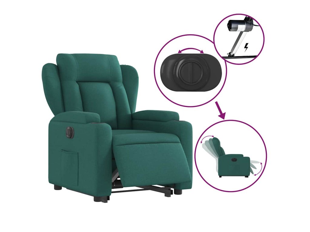 Elektrické zvedací polohovací křeslo tmavě zelené textil 3204512