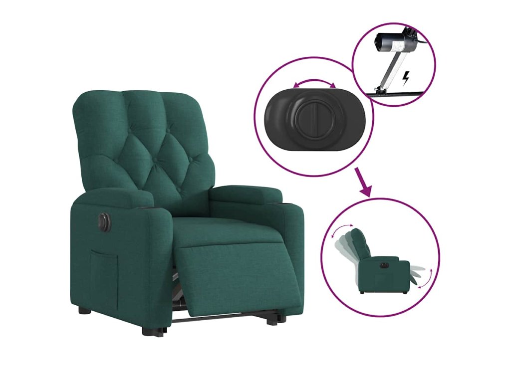 Elektrické zvedací polohovací křeslo tmavě zelené textil 3204740