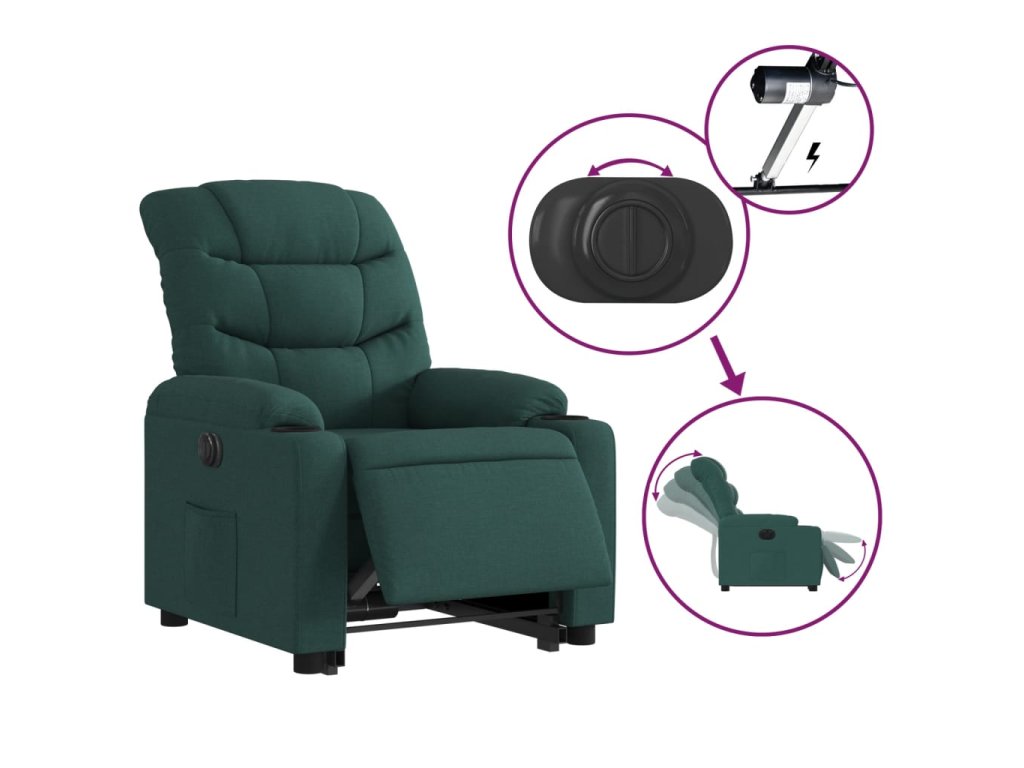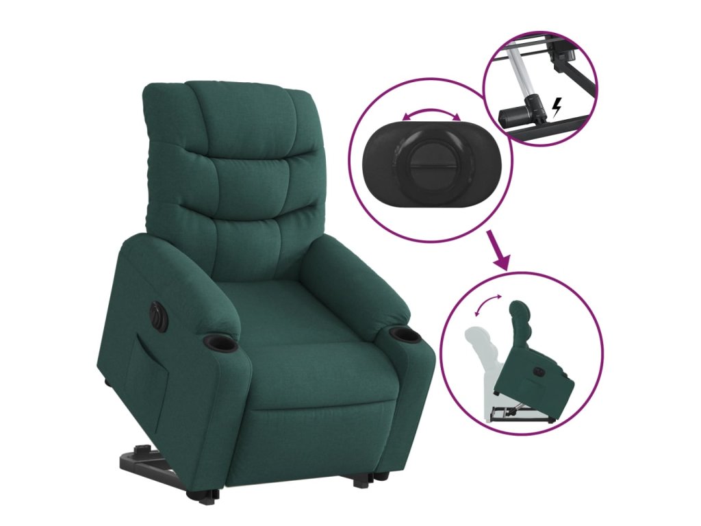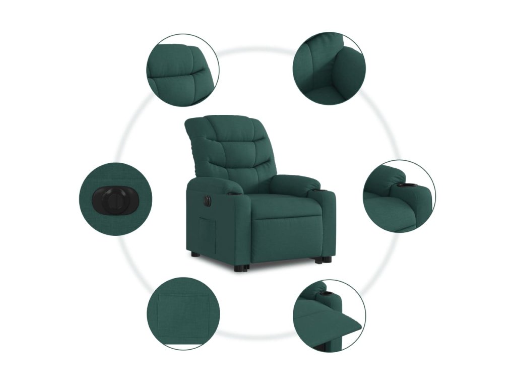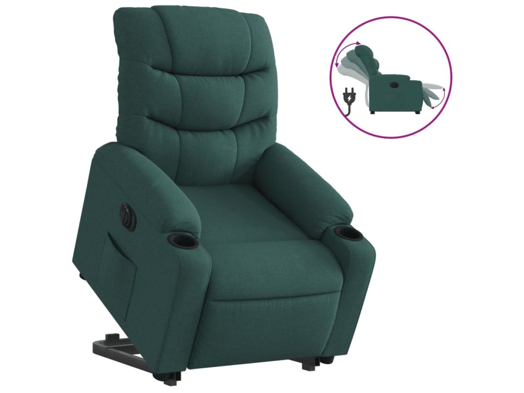 Elektrické zvedací polohovací křeslo tmavě zelené textil 3206669