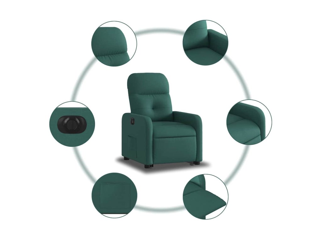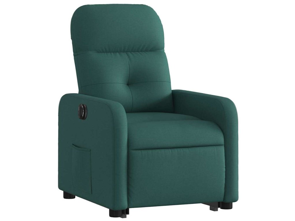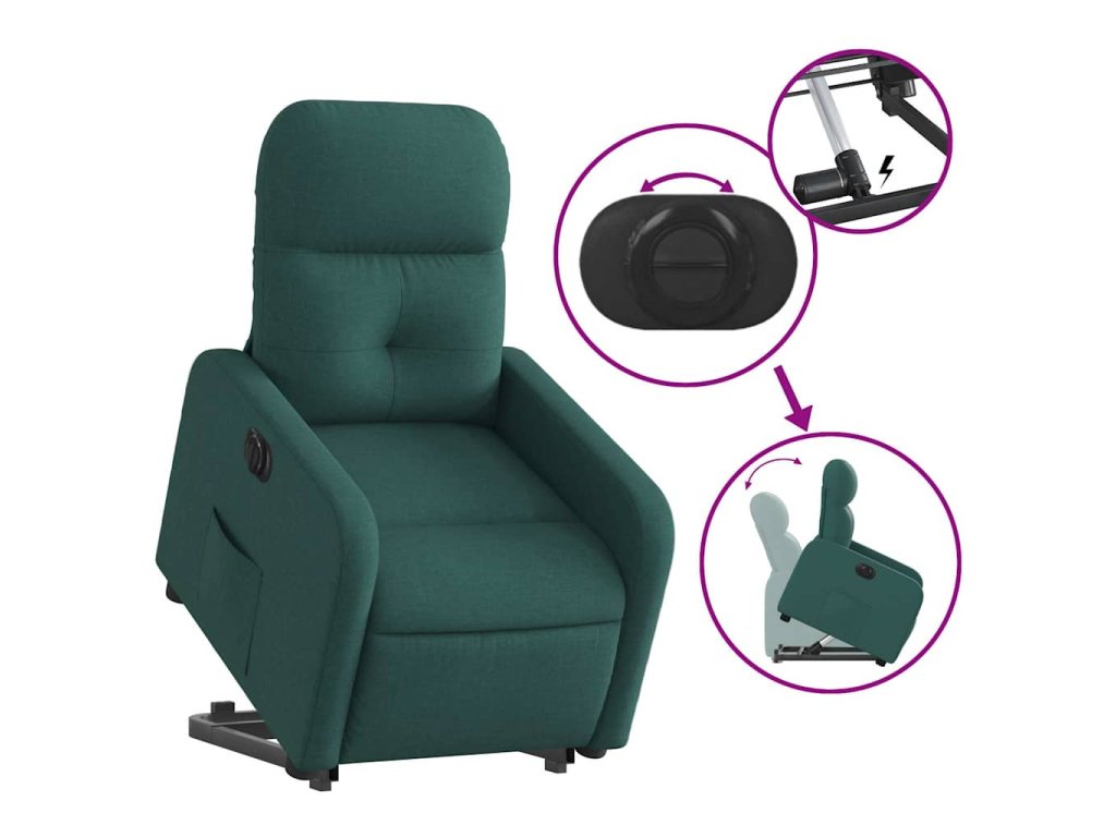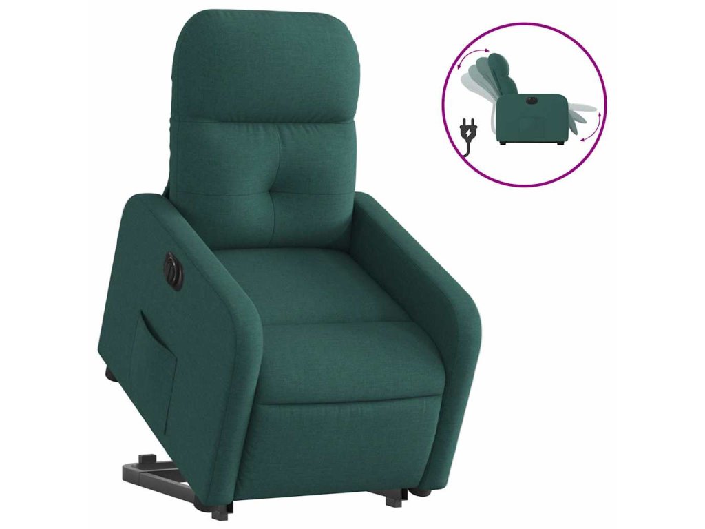 Elektrické zvedací polohovací křeslo tmavě zelené textil 3206819