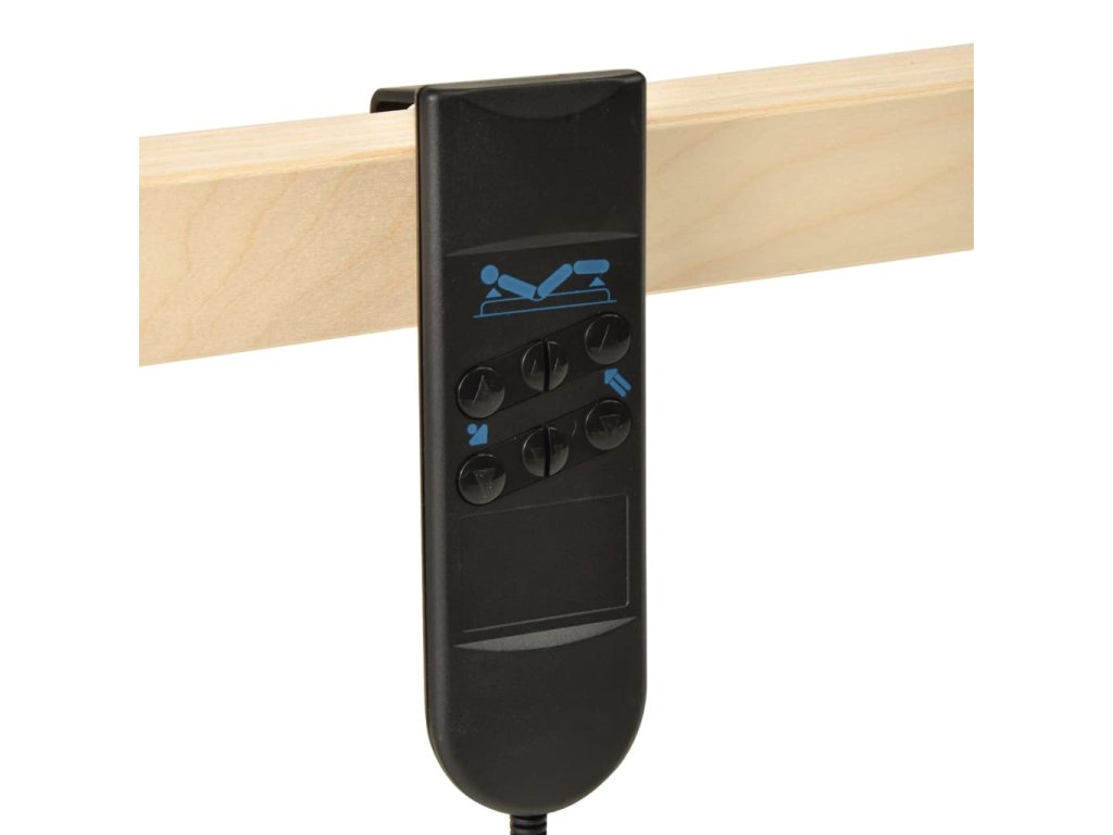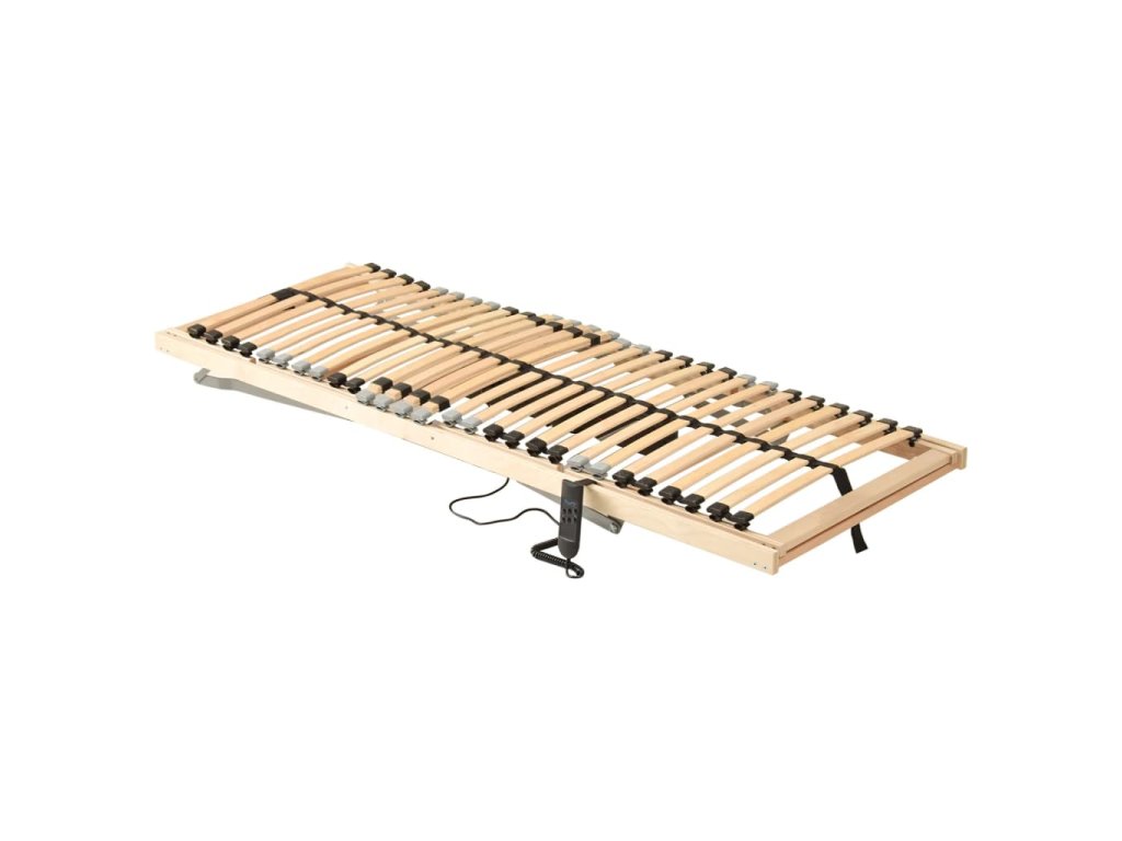 Rošt postele s rámem z masivního bukového dřeva a břízovými lamelami je robustní a odolný. Sedm komfortních zón poskytuje vašemu tělu optimální podporu. Oba konce lamel jsou na místě upevněné gumovými uzávěry SBS pro lepší stabilitu celé konstrukce. S pomocí 4 nastavitelných dvojitých lamel ve středové zóně můžete uzpůsobit pevnost roštu svým potřebám. Oblasti pod hlavou a pod nohami jsou nastavitelné příručním ovladačem pro vaše pohodlí.