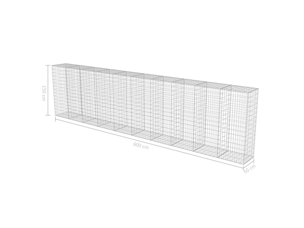 Gabionová zeď s víky z pozinkované oceli 600 x 50 x 150 cm 143582