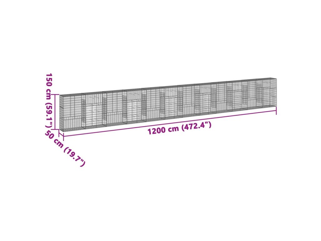 Gabionový koš s víkem 1 200 x 50 x 150 cm pozinkované železo 3295165
