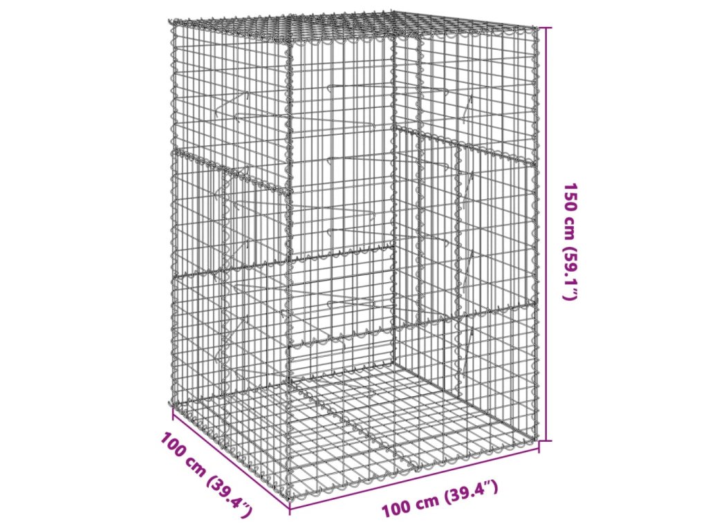 Gabionový koš s víkem 100 x 100 x 150 cm pozinkované železo 3295213