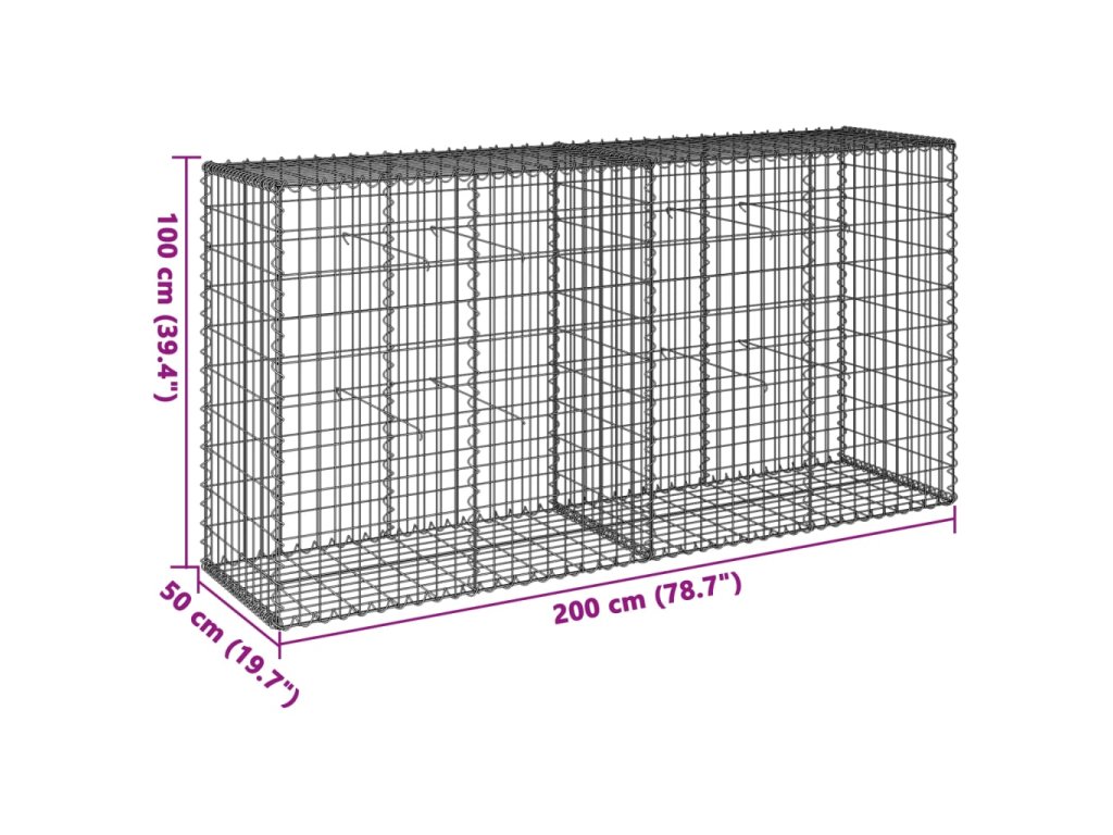 Gabionový koš s víkem 200 x 50 x 100 cm pozinkované železo 3295143