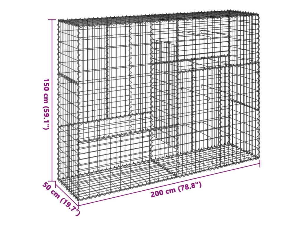Gabionový koš s víkem 200 x 50 x 150 cm pozinkované železo 3295155