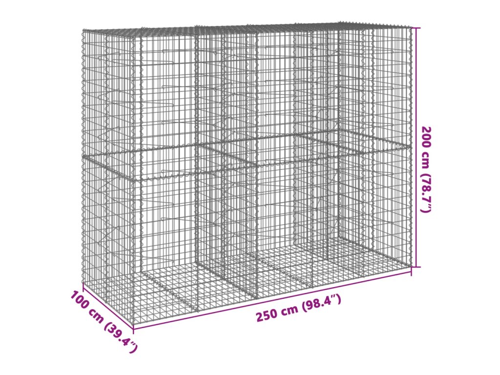 Gabionový koš s víkem 250 x 100 x 200 cm pozinkované železo 3295228