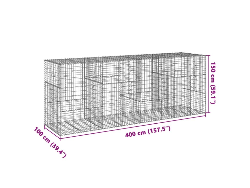 Gabionový koš s víkem 400 x 100 x 150 cm pozinkované železo 3295216