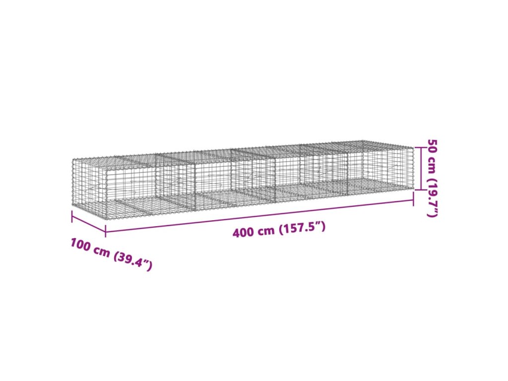 Gabionový koš s víkem 400 x 100 x 50 cm pozinkované železo 3295181