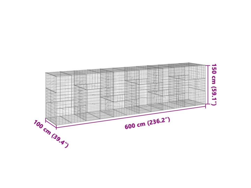 Gabionový koš s víkem 600 x 100 x 150 cm pozinkované železo 3295218