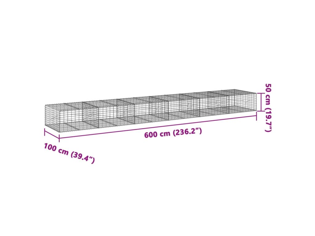 Gabionový koš s víkem 600 x 100 x 50 cm pozinkované železo 3295183