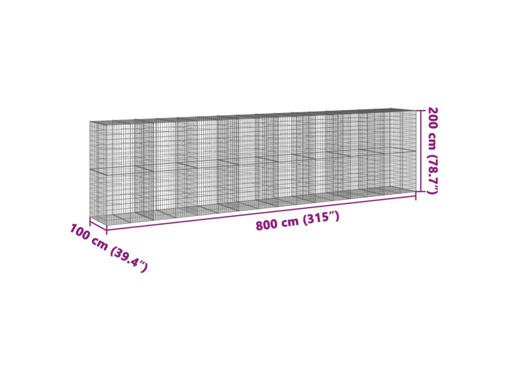 Gabionový koš s víkem 800 x 100 x 200 cm pozinkované železo 3295239