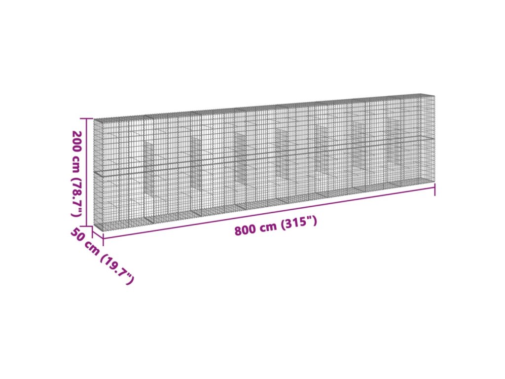 Gabionový koš s víkem 800 x 50 x 200 cm pozinkované železo 3295173