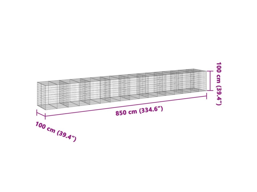 Gabionový koš s víkem 850 x 100 x 100 cm pozinkované železo 3295205