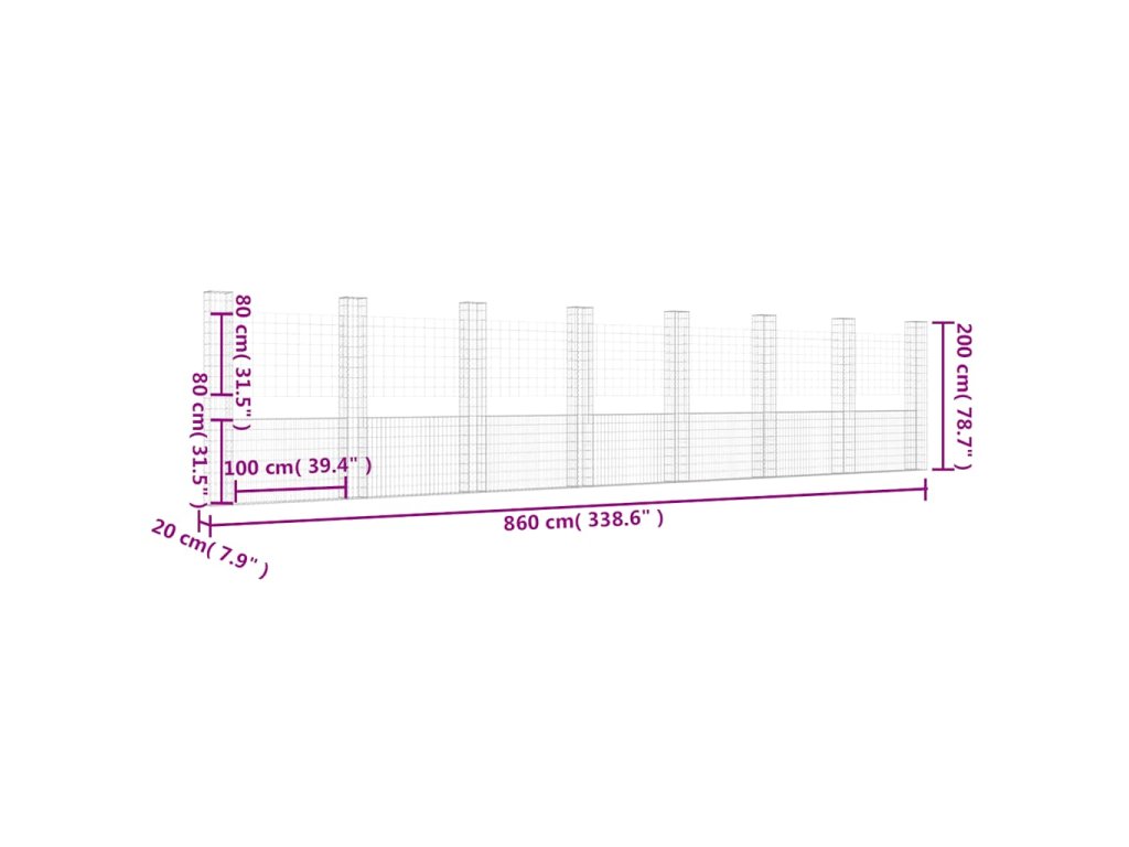 Gabion se sloupky, vyrobený z nerezavějícího železa odolného vůči povětrnostním vlivům, je velmi stabilní a odolný. Síťová mřížka je tvořena vodorovnými a svislými dráty, které jsou ve všech spojích svařené. Díky drátu o průměru 3,5 mm je gabion velmi robustní. Gabionová stěna je určená k vyplnění kameny nebo kamennou drtí pro rychlou výstavbu. Tento gabion je ideální pro zahradní projekty a ve vašem venkovním obytném prostoru nepochybně upoutá pozornost.