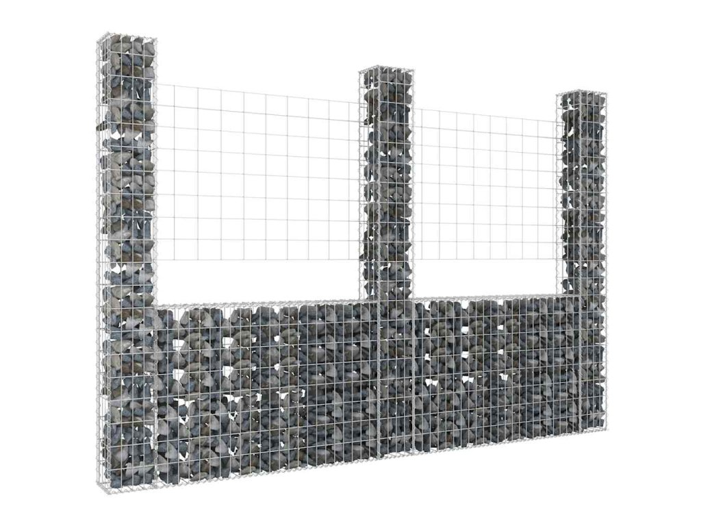 Gabionový koš ve tvaru U se 3 sloupky železo 260 x 20 x 200 cm 151290