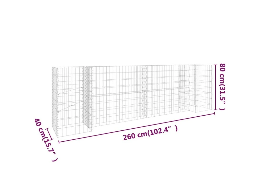 Robustní gabion je designovaný tak, aby ho bylo možné naplnit kameny nebo štěrkem. Gabion je vyrobený z nerezavějící oceli, která nepodléhá povětrnostním vlivům, a proto je velmi stabilní a odolný. Síťová mřížka je tvořená svislými a vodorovnými dráty, které jsou ve všech spojích svařené, aby se tak zajistila mimořádná pevnost.