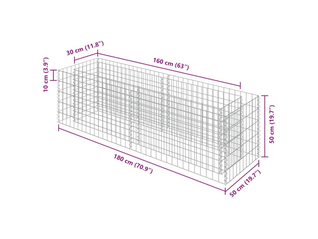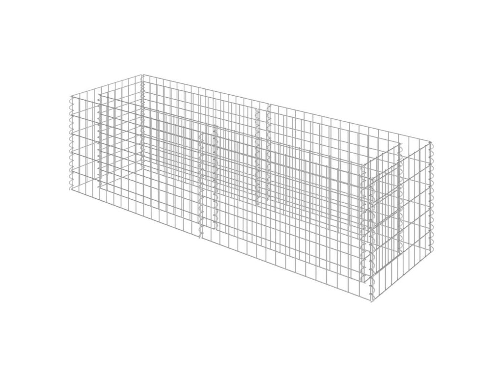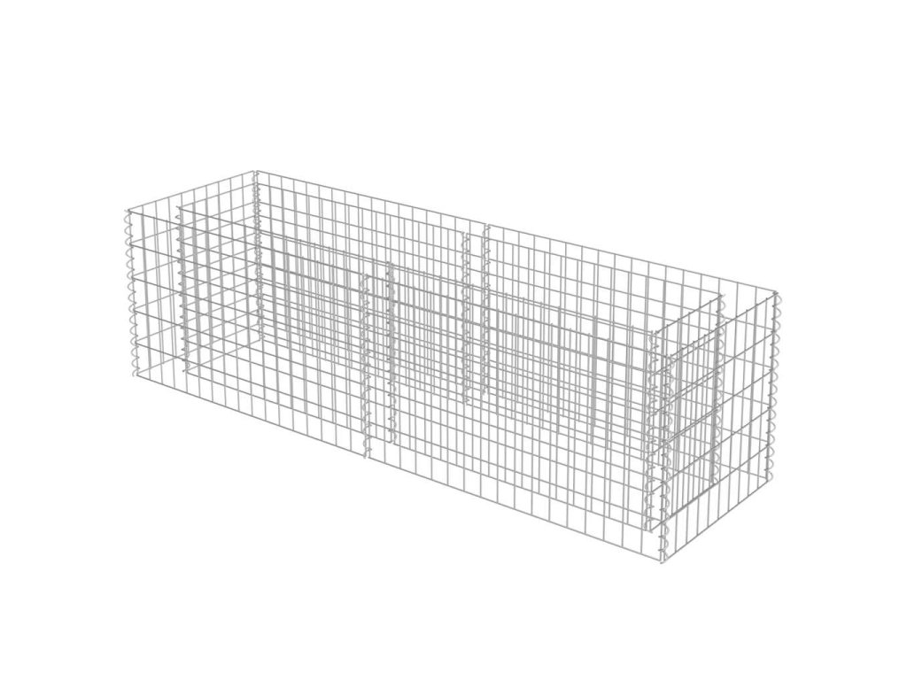 Robustní gabion je určen k tomu, aby byl naplněn kameny nebo štěrkem. Je vyrobený z nerezavějící pozinkované oceli, která nepodléhá povětrnostním vlivům, takže vysoký záhon je velmi stabilní a odolný. Síťová mřížka je tvořená svislými a vodorovnými dráty, které jsou ve všech spojích svařené, aby se tak zajistila mimořádná pevnost.