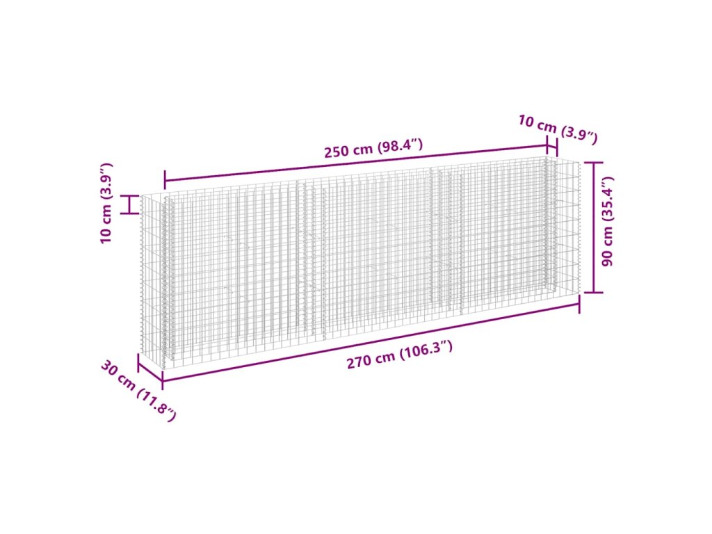Robustní gabion je designovaný tak, aby ho bylo možné naplnit kameny nebo štěrkem. Gabion je vyrobený z nerezavějící pozinkované oceli, která nepodléhá povětrnostním vlivům, a proto je velmi stabilní a odolný. Síťová mřížka je tvořená svislými a vodorovnými dráty, které jsou ve všech spojích svařené, aby se tak zajistila mimořádná pevnost.