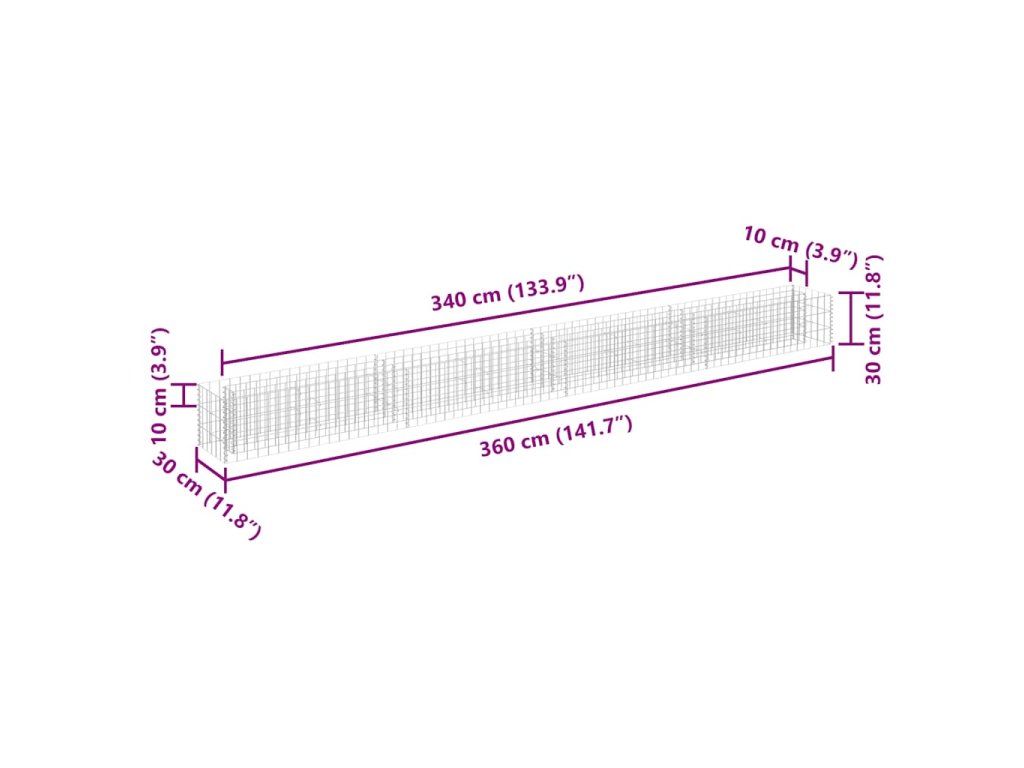 Gabionový vyvýšený záhon pozinkovaná ocel 360 x 30 x 30 cm 145641