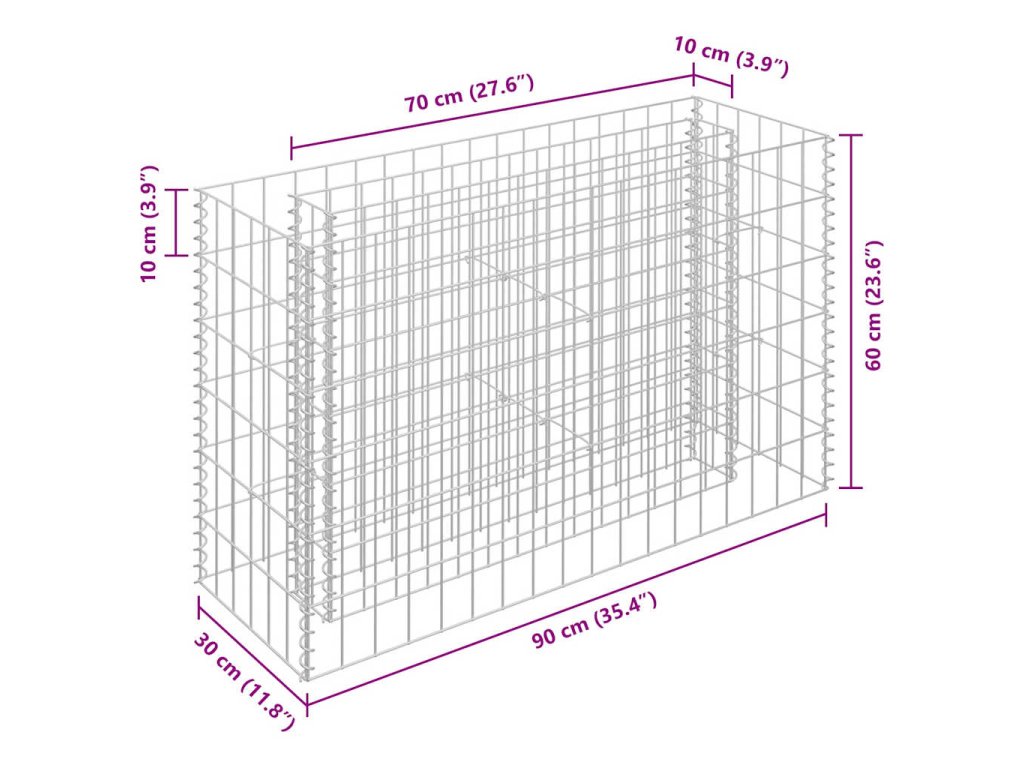 Gabionový vyvýšený záhon pozinkovaná ocel 90 x 30 x 60 cm 145630