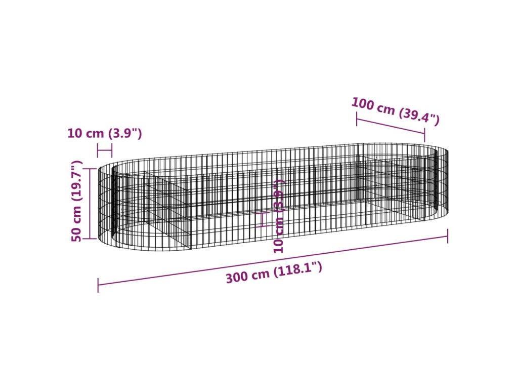 Gabionový vyvýšený záhon pozinkované železo 300 x 100 x 50 cm 152041
