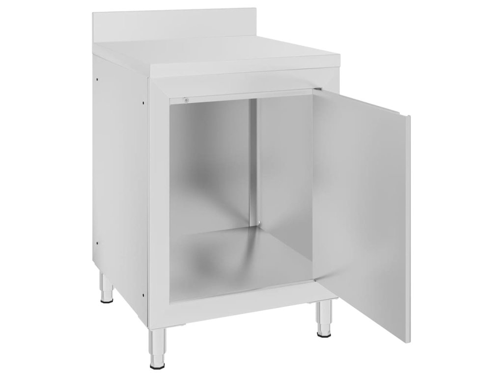 Tato úložní skříňka je vyrobená z kvalitní nerezové oceli a je robustní, antikorozní a snadno se čistí. Skříňka poskytuje dostatek úložného prostoru pro úklidové vybavení a příslušenství. Nastavitelné nožičky umožňují vyrovnat skříňku i na nerovné ploše. Součástí skříňky je 10 cm vysoký zadní lem a otvor na vodní trubku.